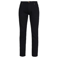 Stretch denim. Straight fit. Self fabric belt loops. YKK zip fly with button over. Five pocket styling. Metal rivet detail at pocket corners. Twin needle stitching.